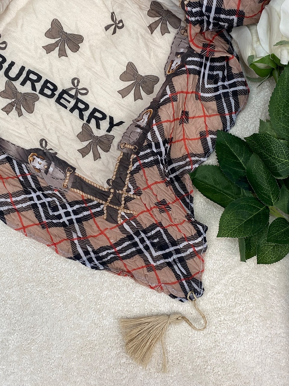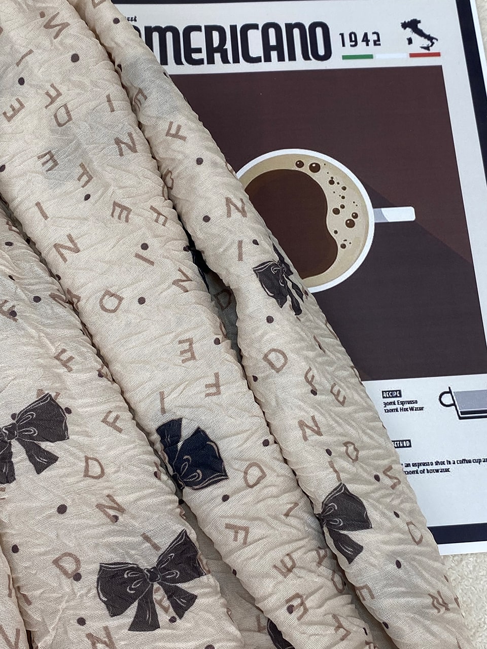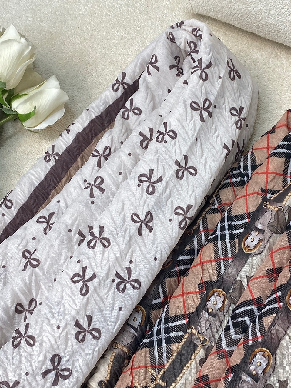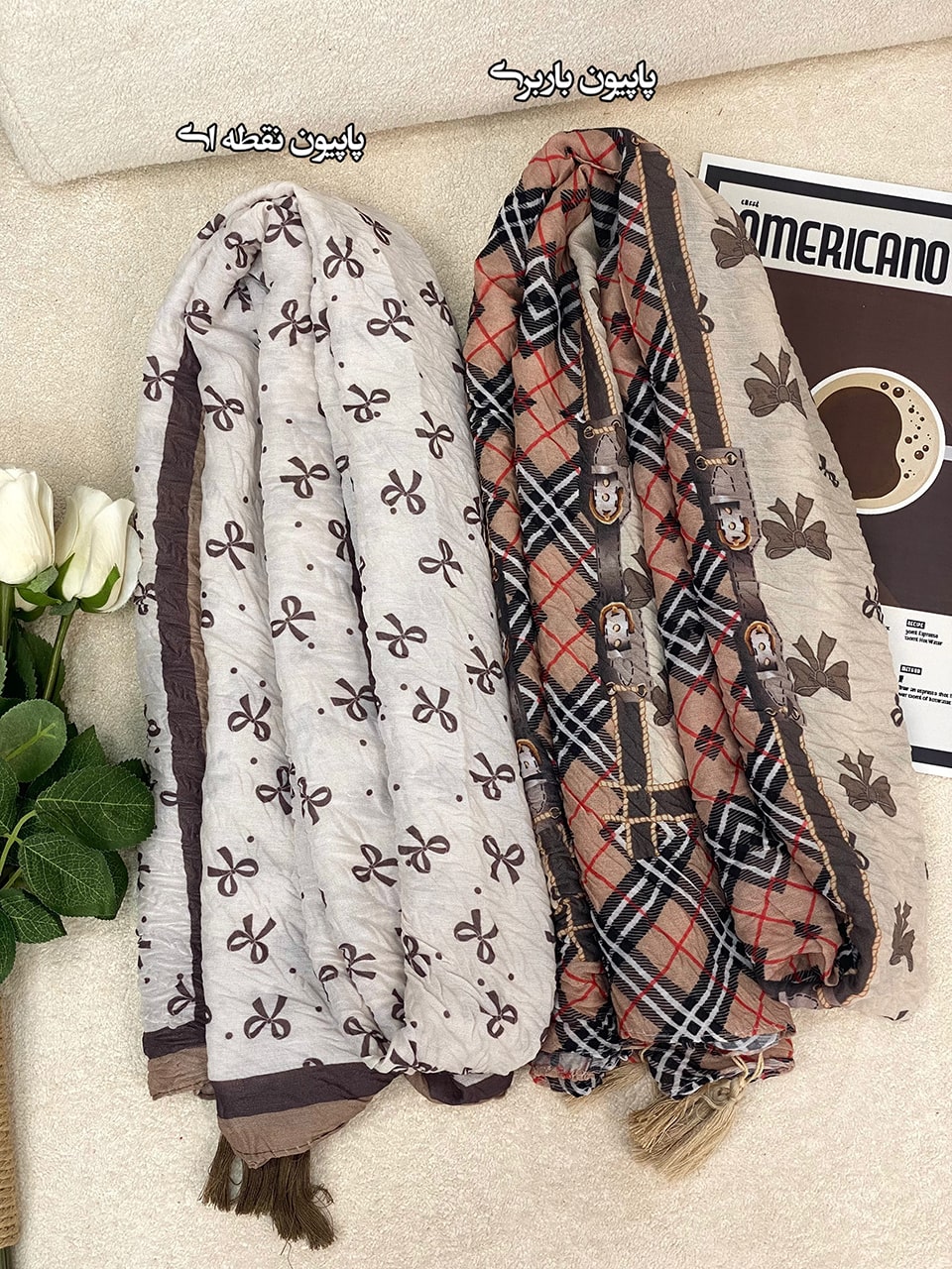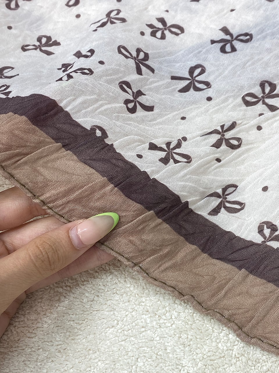 شال پلیسه پامرغی پاپیون کرم نسکافه ای (1766)